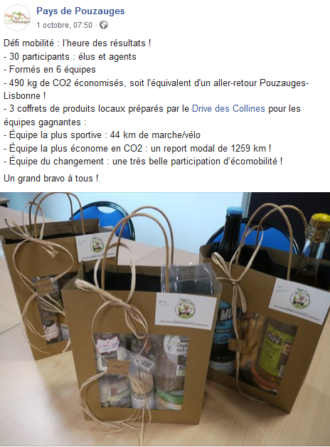 Au total, ce sont 26 agents/élus, qui ont économisé 490 kg de CO2 ; soit l'équivalent d'un aller-retour Pouzauges-Lisbonne !